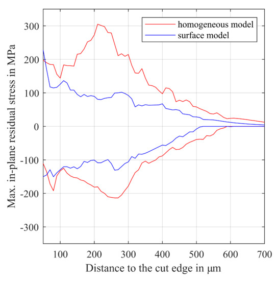 Following the final annealing, blanking is an essential processing step to give the final shape to the non-oriented electrical steel. Residual stress is affecting the magnetic properties of iron by hindrance to domain wall motion ([21], p. 308). Consequently, the magnetic properties of blanked electrical steel parts are deteriorated along the cut edges [22]. The knowledge of the actual residual stress state in blanked parts is of high importance to manufacturers of electromagnetic components. Although experimental measuring methods such as neutron grating interferometry, neutron diffractometry or nanoindentation are time-consuming and expensive, modeling approaches can provide an approximation of the tensile and compressive stress distribution in the blanked sheets.