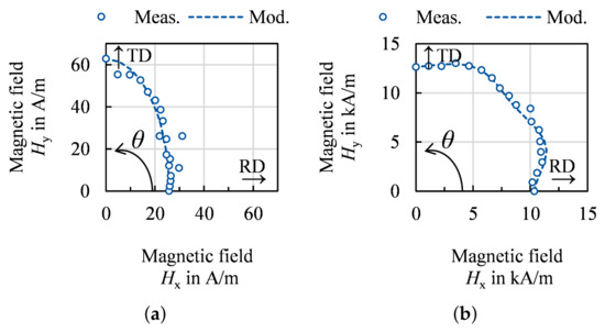 - Fryskowski, B. Experimental evaluation of magnetic anisotropy in electrical steel sheets. J. Magn. Magn. Mater. 2008, 320, 515–522. [Google Scholar] [CrossRef]