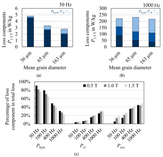 - Leuning, N.; Steentjes, S.; Hameyer, K. Effect of grain size and magnetic texture on iron-loss components in NO electrical steel at different frequencies. J. Magn. Magn. Mater. 2019, 469, 373–382. [Google Scholar] [CrossRef]