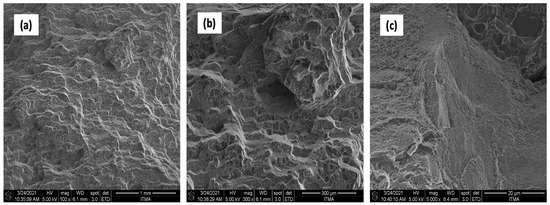 Uniformly distributed dimples and small cracks could be seen on the surface of the sample AA7075 chips, as shown in Figure 17. At 550 °Ċ, 3 h, clear tears and micro cracks were observed on the fracture.