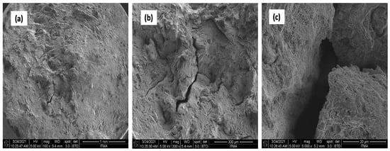 AA7075 chips (a) 100× (b) 300× (c) 5000×.