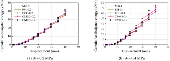 Cumulative energy dissipation: (a) σn = 0.2 MPa and (b) σn = 0.4 MPa.