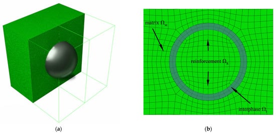 The representative volume element (RVE) of the composite used in the finite element method (FEM) computations has a single centrally located particle, which is surrounded by an interphase of constant thickness, and they are both inserted into the matrix; this composition is shown in