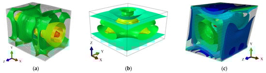 Figure 2, together with the isosurfaces of the principal strain. They include prescribed uniaxial tensions, biaxial tensions and uniaxial shears that are applied on the RVE of the composite. The prescribed strains assigned on the outer edges are incrementally increased from the zero strain up to