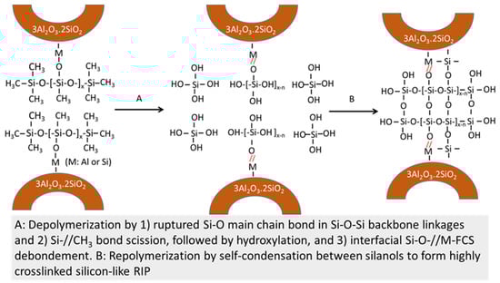 Partial depolymerization and repolymerization pathway of PMHS bonded to the FCS surface at 175 °C.