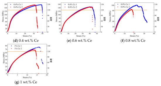 0.4 wt.% Ce0.6 wt.% Ce0.8 wt.% Ce1 wt.% Ce3 wt.% Ce