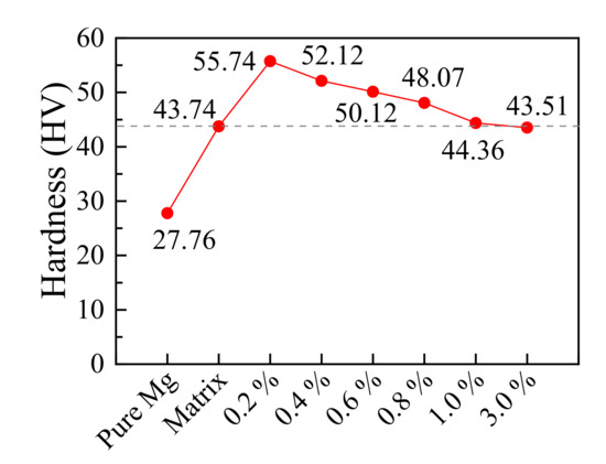 Figure 10. Hardness curve of the samples with different Ce contents.