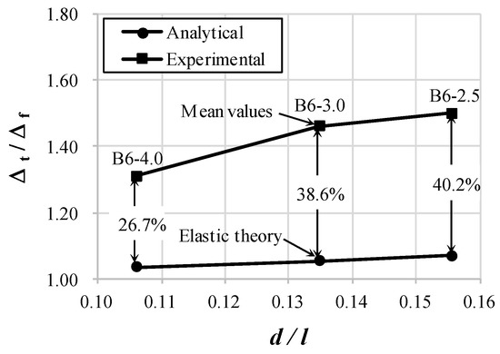 where is the factor dependent on the loading type. is 3.4 for the central concentrated load and 2.8 for the uniformly distributed load. As shown in Equation (4), the effect of shear on the deflection in the elastic theory is proportional to the square of .