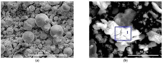 As shown in Table 1, the FA is supported by a power plant (Nanning, Jiangxi Province, China). The FA (SiO2 + Al2O3, 76.30% by mass) includes 5.42% CaO, which is classified as low-calcium fly ash (Figure 1a). The CS is derived from a chemical industrial C2H2 plant (Qinghai of China), which contains 63.13% CaO (Figure 1b). For the physical indexes of FA, the specific gravity reaches 2.45, the specific surface area is 500 m2/kg, the amount passing #325 sieve reaches 73%, and the pH measures 5.93 at 100% of water content. Additionally, the physical indexes of CS present the difference in that of FA. For CS, the specific gravity reaches 1.80, the specific surface area is 420 m2/kg, the amount passing #325 sieve reaches 40%, and the pH value is 10.55 at 100% of water content, as shown in Table 2. Both the powder FA and powder CS were dried at 40 °C in order to be used.