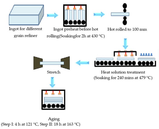 Scheme of the preparation process of the studied 7050-T7651 plate.