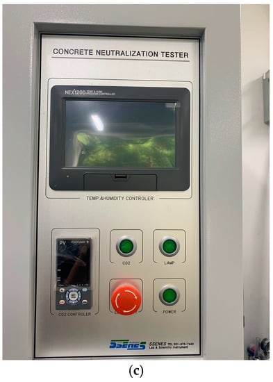 Carbonation acceleration chamber: (a) outside chamber; (b) inside chamber; (c) control system.