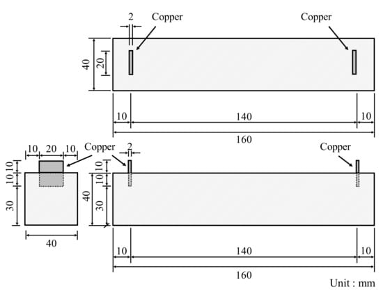Specimen dimension of conductive cement mortar for electrical resistance measurement.