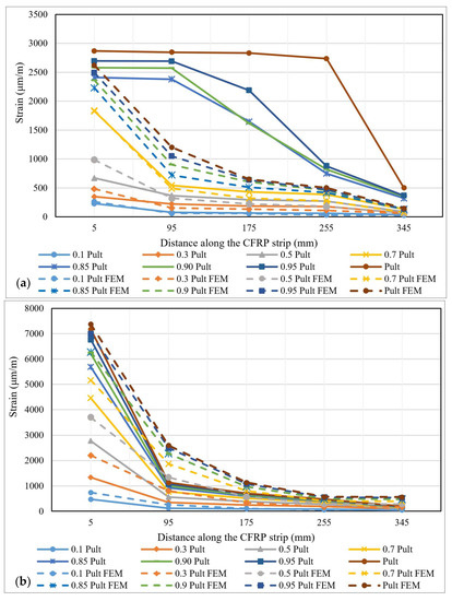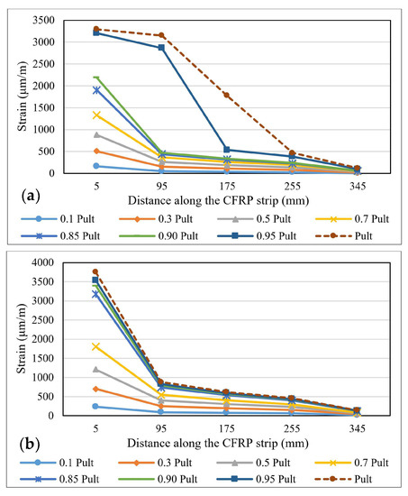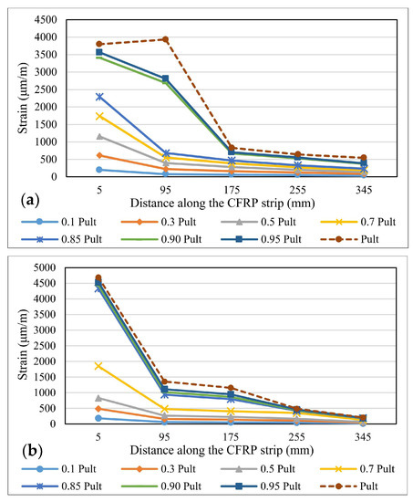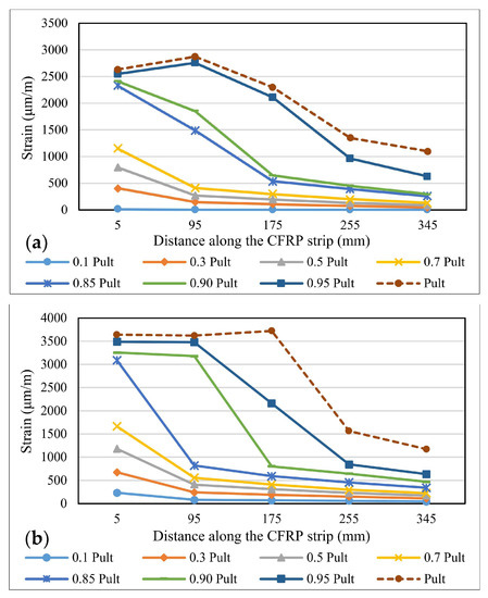 3.5. Stress–Strain Distributions for CFRP Strips