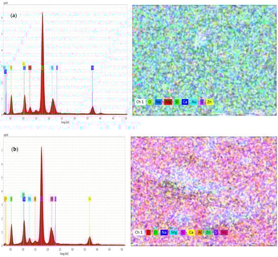 The variation of chemical compositions of Zn and S was analyzed and evaluated by EDAX, as shown in Figure 4a,b.