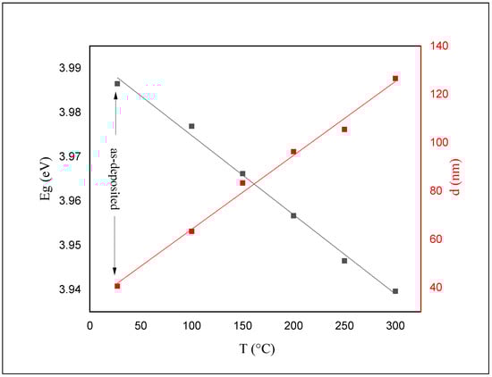 The calculated Eg and thickness values for both as-deposited and annealed films are shown in Figure 8.