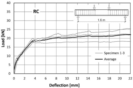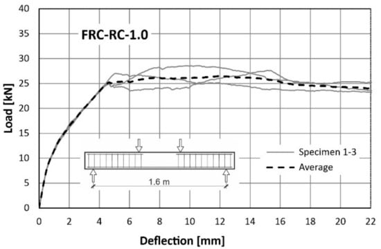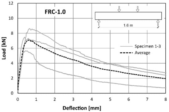 Load-deflection curves from flexural tests on FRC-RC-1.0.