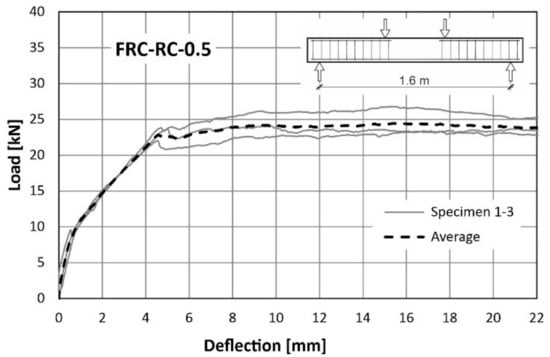 Load-deflection curves from flexural tests on FRC-RC-0.5.