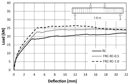 Comparison of the load-deflection curves from flexural tests on FRC-RC series.