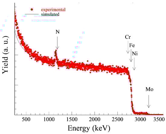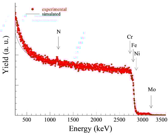 The size of the implanted doses was chosen according to the recommendations of the authors [1] and [5]. Nitrogen plasma was generated by a radio frequency discharge with a power of 500 W at a chamber pressure of 0.3 Pa. To improve the processing homogeneity the samples were rotated (10 rpm) during the process. The one dose application of nitrogen lasted approximately 5 h. The pulsed accelerating voltage used was 20 kV (due to the technical dispositions of the device) with a frequency of 150 Hz and a pulse length of 15 µs. The Rutherford Back Scattering (RBS) method was used to determine the exact implanted nitrogen dose (Figure 2 and Figure 3).