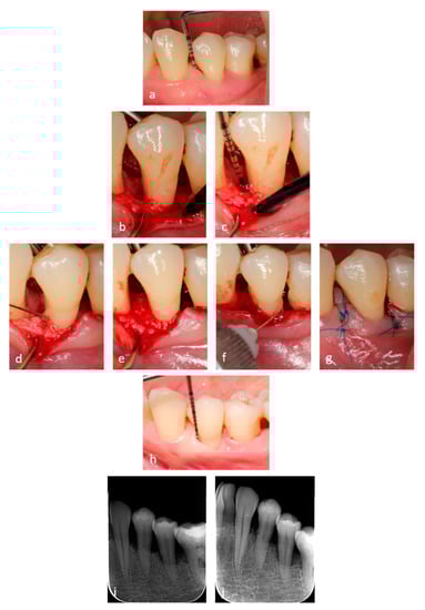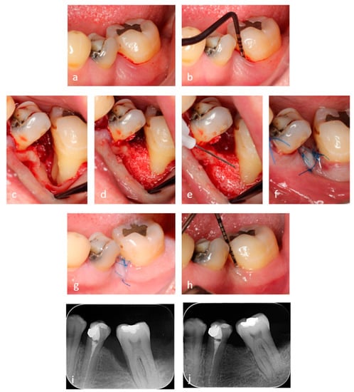 - Wachtel, H.; Schenk, G.; Böhm, S.; Weng, D.; Zuhr, O.; Hürzeler, M.B. Microsurgical Access Flap and Enamel Matrix Derivative for the Treatment of Periodontal Intrabony Defects: A Controlled Clinical Study: Microsurgical Access Flap and EMD. J. Clin. Periodontol. 2003, 30, 496–504. [Google Scholar] [CrossRef]
