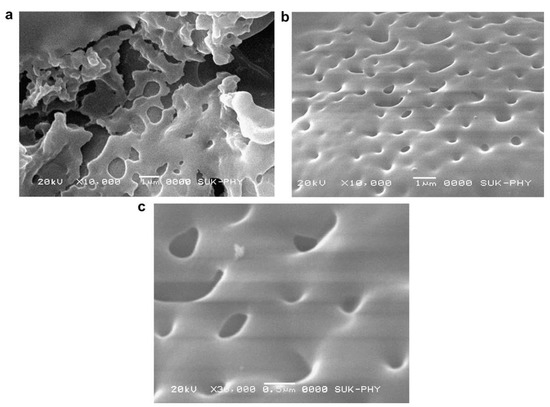 FESEM micrographs of (a) unmodified silica film and modified silica film at magnification of (b) 10,000× and (c) 30,000×. Reproduced with permission from [47].