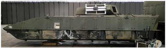 A common practice used by R&D institutions during the design and development of new constructions is the numerical approach. There are two common approaches, one based on modelling of rigid bodies and the other relying on the finite element method (FEM). For example, in [2], a four-wheeled vehicle with a mounted mortar is modelled using a six-degrees-of-freedom model. The effects of firing the weapon (impact amplitude, duration, and elevation angle) on vehicle are investigated. However, FEM analysis gives much wider possibilities, such as modal analysis and evaluation of a structural response to static and dynamic loads. In [3,4], tests were carried out to determine crew and special equipment exposure to hazards such as direct fire, shrapnel, explosion of anti-tank mines, or improvised explosive devices. As a result, this approach allows for the development of solutions providing improved protection [5,6,7,8] and parameter optimisation [9] in order to minimise crew exposure as much as possible. Another important aspect to be included in the design process is compliance with international requirements, such as the NATO STANAG 4569.