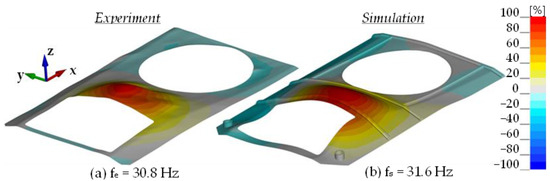 Relative differences in vibration mode shapes (real object vs. simulation).