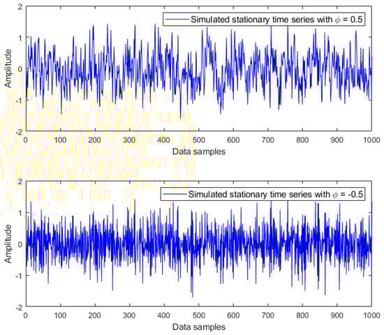 Then, a key question here is how to test for (non)stationarity of a time series. Typically, data acquired from engineering systems or structures involve mostly two types of signals: (1) stationary time series (if ) and (2) nonstationary random walk series (if ). Then, the concern would be if a unit root exists () or does not exist (). If a unit root exists, then one has a nonstationary time series; in the case where there is no unit root, then one has a stationary time series [18]. This can be performed by means of a unit root test, which makes statistical inference about the (non)stationarity of time series data.