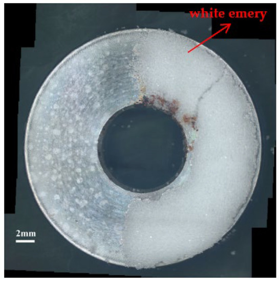 The shape and dimensions of the test specimens are presented in Figure 1. White emery was adopted in this work to simulate the dust accumulated on the as-machined specimen surface. The as-machined surface roughness (Ra) of the specimen was 4.9 μm. The chemical compositions of the AISI 304L steel used in the work are listed in Table 1. The test samples were manufactured from AISI 304L austenitic stainless steel, and white emery was made from alumina. Duplicate tests were conducted for each experimental condition.