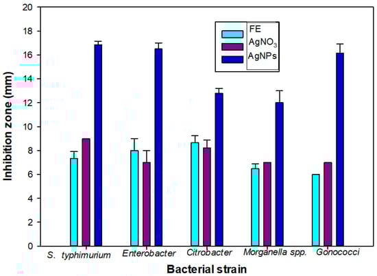 3.5. Antimicrobial Activity of AgNPs