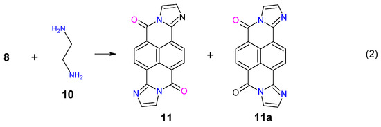 The condensation of dianhydride naphthalene-1,8:4,5-tetracarboxylic acid (8) with ethylenediamine (10), shown in Figure 5, led to isomeric bisamidines 11 and 11a, characterized by formation of two imidazole moieties. The mechanism of aromatization of imidazole rings was not clearly explained.
