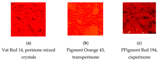 The color of both perinone 1 isomers as well as of the solid solution are shown in Figure 27. They form insoluble fine powders in shades ranging from orange to deep red and demonstrate very high heat stability (melting points far above 673 K) and are very lightfast and weatherfast [123]. Due to this and quite a high price they are mainly used for spin-dying of polymer fibers for outdoor applications, e.g., in polyacrylonitrile fibers for awnings, tents, and canvasses. Other uses include plastic products, paints, and special printing inks.
