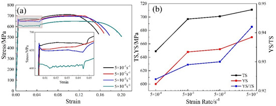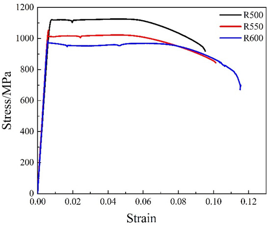 - The yield-to-tensile strength ratio of the samples after warm rolling and annealing at 600 °C for 2 h at different strain rates was greater than 0.92, and it had a high yield strength, that is, greater than 600 MPa, which had good performance when used as a fastener.