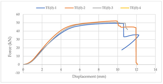 Samples with ellipse-shaped cavities, marked TE(0)-n, and circular cavities, marked TK(0)-n, were tested. The notation (0) represents compression in the direction of weaker axis, while “n” represents the number of the tested sample. In Figure 19, Figure 20 and Figure 21, the results, according to the data obtained by tests, are shown.