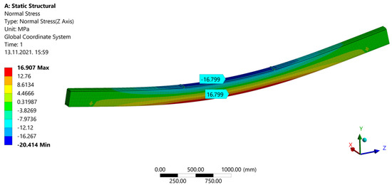 Stresses from the FEM model were compared with those calculated manually, using the procedure according to Annex B from EC5 for mechanically jointed beams. Maximum stress for the strong-axis bending deviates by only 1.24% (Table 4).