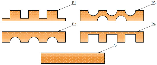 Elements consist of 20 mm-thick lamellae in which elliptical or circular cavities are incised (Figure 9). In each lamella, the grains are directed along its length and are interconnected by gluing. The lamellae are obtained from recycled waste material, and the sawdust formed by the incision of the cavities can be used as an insulating material or be processed into pellets.
