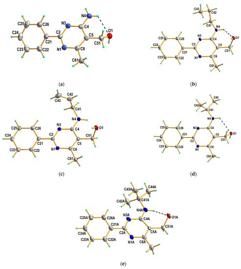 3.2. Crystal Structures of Compounds 3c and 3e–3h