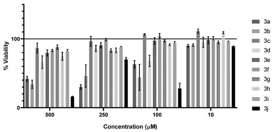 | 3g | 209.4 µM | 183.3 µM | >250 µM | >250 µM | 146.7 µM |