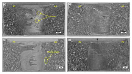 - Commin, L.; Dumont, M.; Masse, J.E.; Barrallier, L. Friction stir welding of AZ31 magnesium alloy rolled sheets: Influence of processing parameters. Acta Mater. 2009, 57, 326–334. [Google Scholar] [CrossRef] [Green Version]