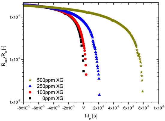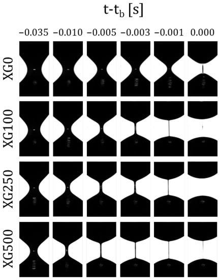 - Ng, H.C.H.; Poole, R.J. Highlighting the need for high-speed imaging in capillary breakup extensional rheometry. Meas. Sci. Technol. 2021, 32, 095301. [Google Scholar] [CrossRef]