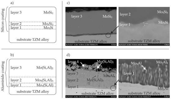 - Jarlaczyńska, A.; Kochmańska, A.; Woitas, A. The structure of silicon coatings obtained on TZM molybdenum alloy by slurry method. Mater. Eng.-Inz. Mater. 2017, 1, 42–47. [Google Scholar] [CrossRef][Green Version]