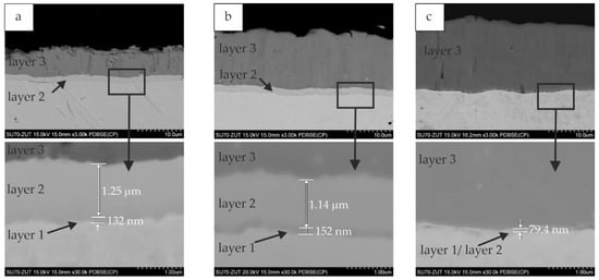 - the use of a larger volume of the slurry (0.3 and 0.6) during production and extension of the annealing time, significantly increased the thickness of the coatings, from about 12 µm in the case of 2 h to about 20 µm in the case of 6 h of annealing,