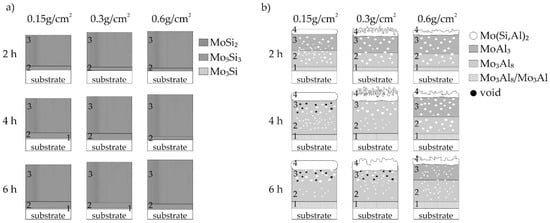 Chicago/Turabian StyleKochmańska, Agnieszka Elżbieta, Aneta Jarlaczyńska, and Jolanta Baranowska. 2021. "Formation of Silicide and Silicide-Aluminide Coatings on Molybdenum Alloy during Slurry Cementation Process: Influence of Slurry Volume" Materials 14, no. 22: 6940. https://doi.org/10.3390/ma14226940