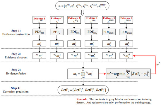 Steps 3 and 4: Evidence fusion and corrosion prediction. The different pieces of discounted evidence can be fused by Dempster’s rule [20].