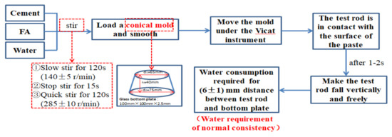 Test process of water requirement for normal consistency.