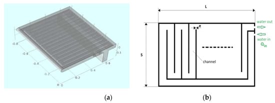 (a) A 3D model for the new plate design; (b) sketch of the cooling channels.