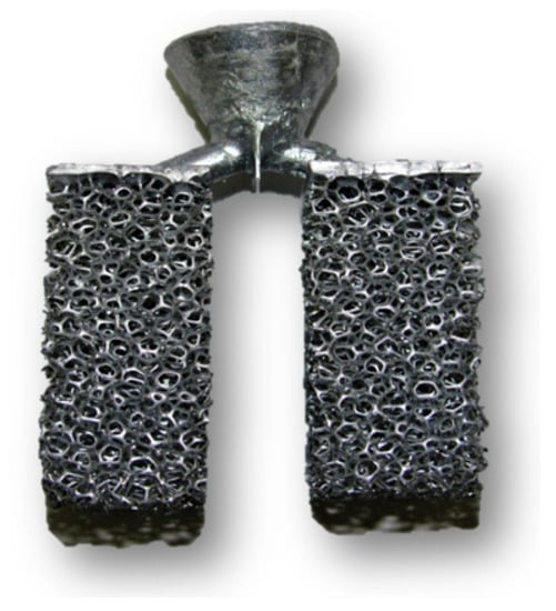 Kroupová, I.; Gawronová, M.; Lichý, P.; Merta, V.; Radkovský, F.; Janovská, K.; Nguyenová, I.; Beňo, J.; Obzina, T.; Vasková, I.; et al. Preparation of Cast Metallic Foams with Irregular and Regular Inner Structure. Materials 2021, 14, 6989. https://doi.org/10.3390/ma14226989