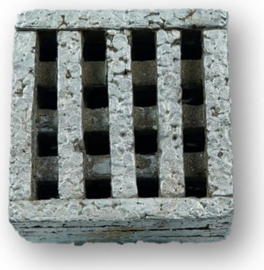 - Gibson, L.J.; Ashby, M.F. Cellular Solids—Structures and Properties; Cambridge University Press: Cambridge, UK, 1997; 515p, ISBN 0-521-49560-1. [Google Scholar]