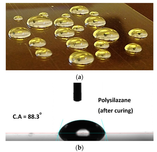 - Zhang, Z.; Shao, Z.; Luo, Y.; An, P.; Zhang, M.; Xu, C. Hydrophobic, transparent and hard silicon oxynitride coating from perhydropolysilazane: Silicon oxynitride coating from perhydropolysilazane. Polym. Int. 2015, 64, 971–978. [Google Scholar] [CrossRef]