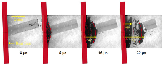 In this context, the laser interferometers have become the standard measuring devices. In particular, two technologies are the most diffused which are called, respectively, VISAR (Velocity Interferometer System for Any Reflector) and PDV (Photonic Doppler Velocimetry). In [43,44,45] more details about the cited measurements systems are given, but here the pros and cons of both are briefly discussed. The VISAR is able to perform velocity measurements which are more detailed, both temporally and spatially, but it has the limitation that it needs a strong return signal, and hence for materials with a low reflectivity and that overcome a great deformation or fragmentation the output data can be very noisy. On the contrary, the PDV is able to work with a lower return signal, but it is characterised by a lower spatial and temporal resolution. For this reason, the interferometry is a very well-suited technique when the tested materials are metals, which generally are reflective and produce flat and solid spallation ejecta, but it might not give the expected results when dealing with brittle and less reflective specimens, e.g., graphite. This is why usually the laser interferometry is combined with high-speed photography methods such as pulsed laser photography or laser shadowgraphy [46,47].